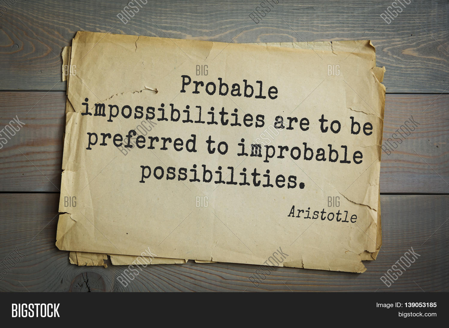 Probable impossibilities are to be preferred to improbable possibilities - Aristotle. Probable impossibilities are to be preferred to improbable possibilities. Probable impossibilities are to be preferred to improbable possibilities.