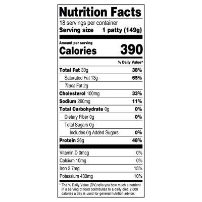 200 calories nutrition grade C plus problematic ingredients and more. Holton doesnt just vary the cuts of meat it uses. Although the packaging proudly touts this patty is 33 larger if you read the fine print theyre merely touting that by weight a third of a pound burger is actually 33 percent.